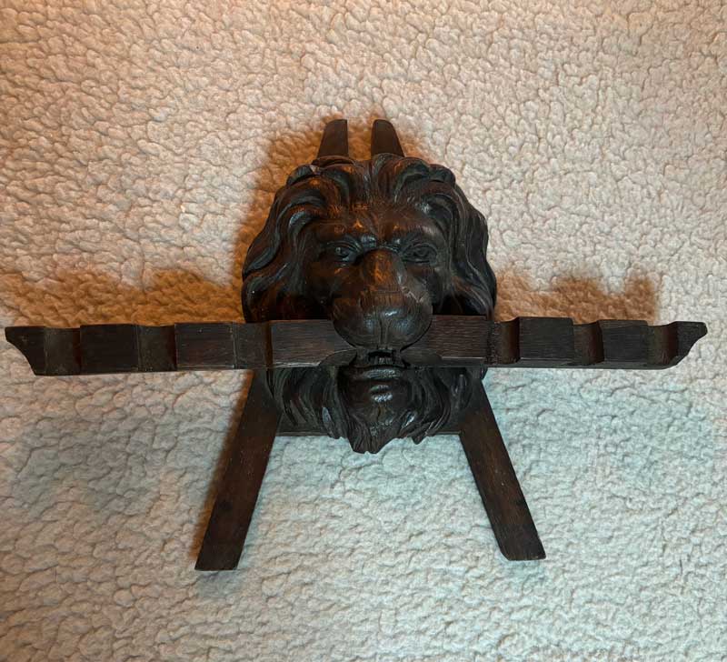 Antique European Lion Head Hand Carved Cue Rack